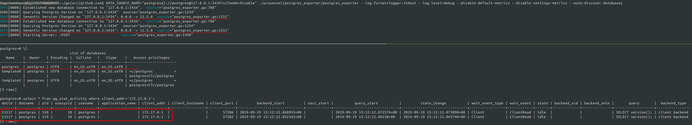 Maybe you neeed change query in function queryDatabases(server *Server) ([]string, error)