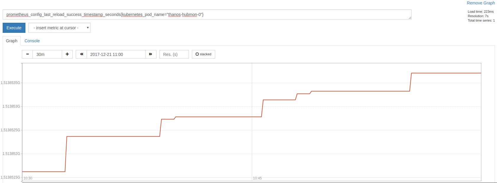 This coincides with our config syncing job that sends a SIGHUP to prometheus at least every hour. The data loss corelates exactly with the SIHGUP log statement and with the prometheus_config_last_reload_success_timestamp
