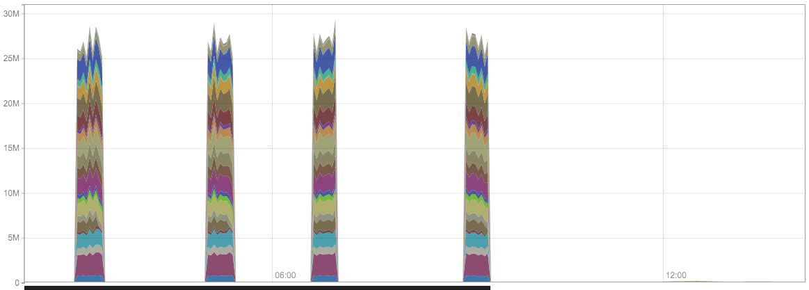rate(ifInUcastPkts{ifIndex="10648"}[30h])don't work as expected. Every couple of hours, we see a huge jump in the graph that shouldn't be there:If I do the math by hand on the raw sample data, it should be a relatively flat graph with a value of ~2000; not peaks of millions.