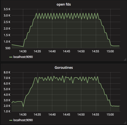 too many open files.↑ Open fd and goroutine count increasing after setting ulimit to 4096, target count 700+, avg scrape duration 60ms.
