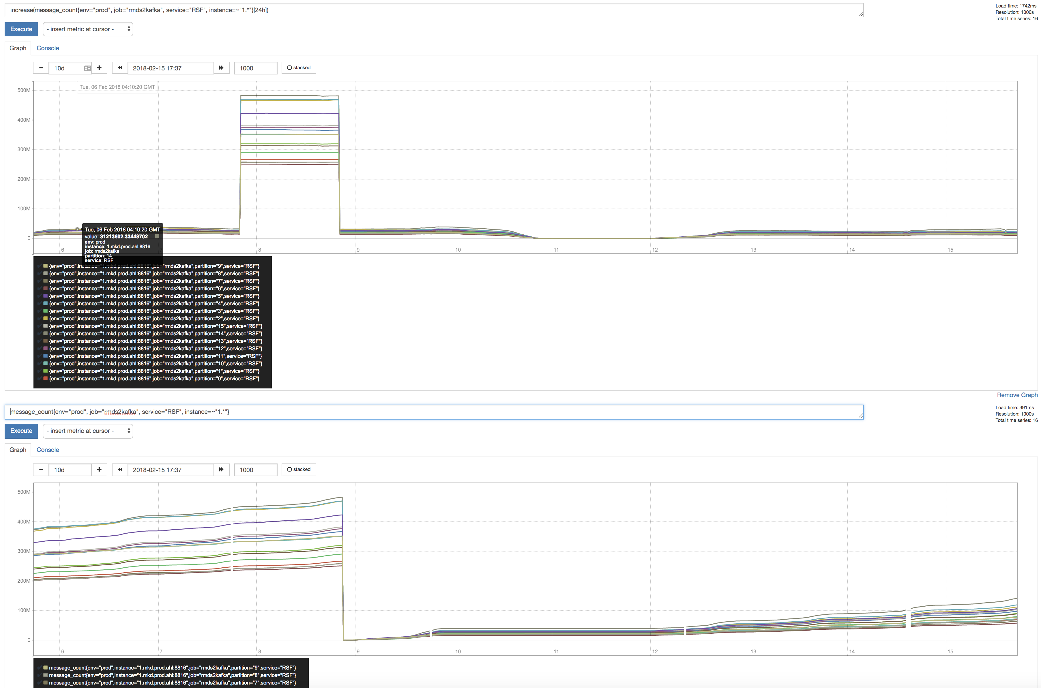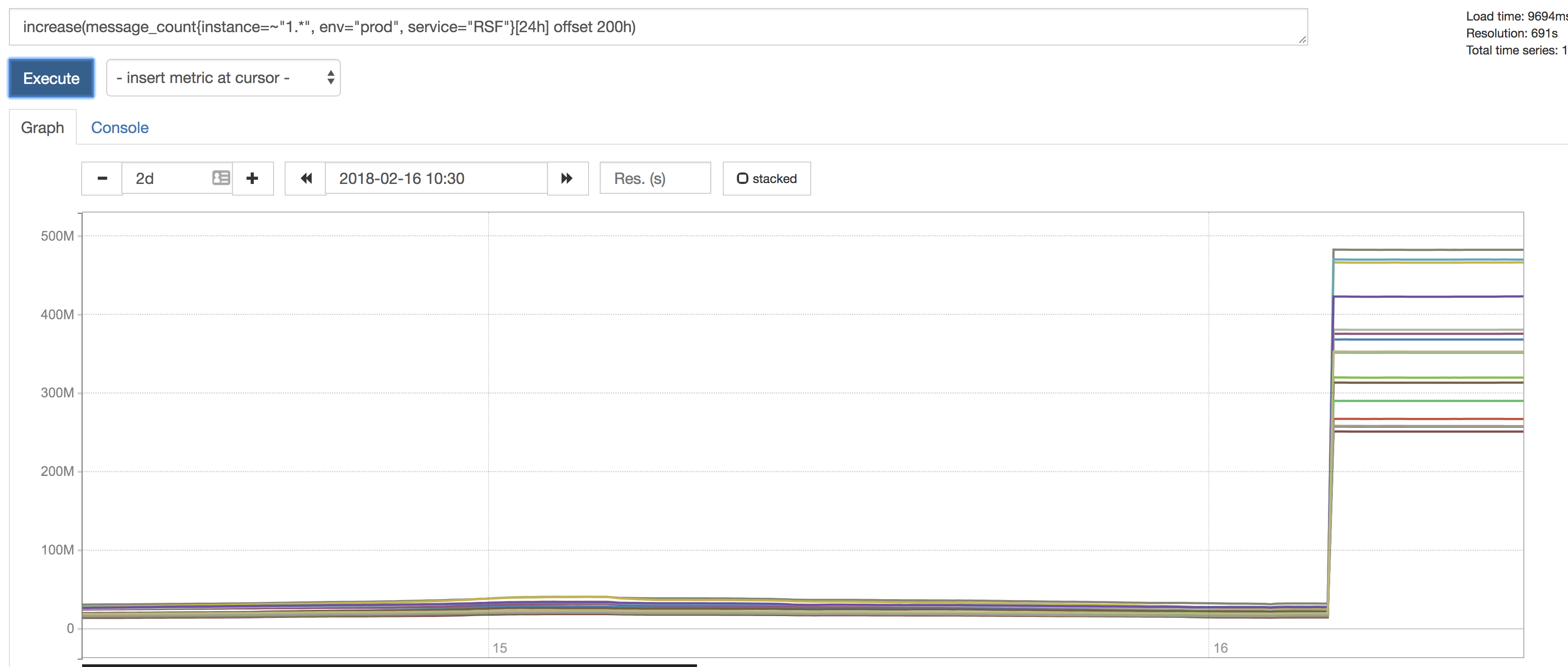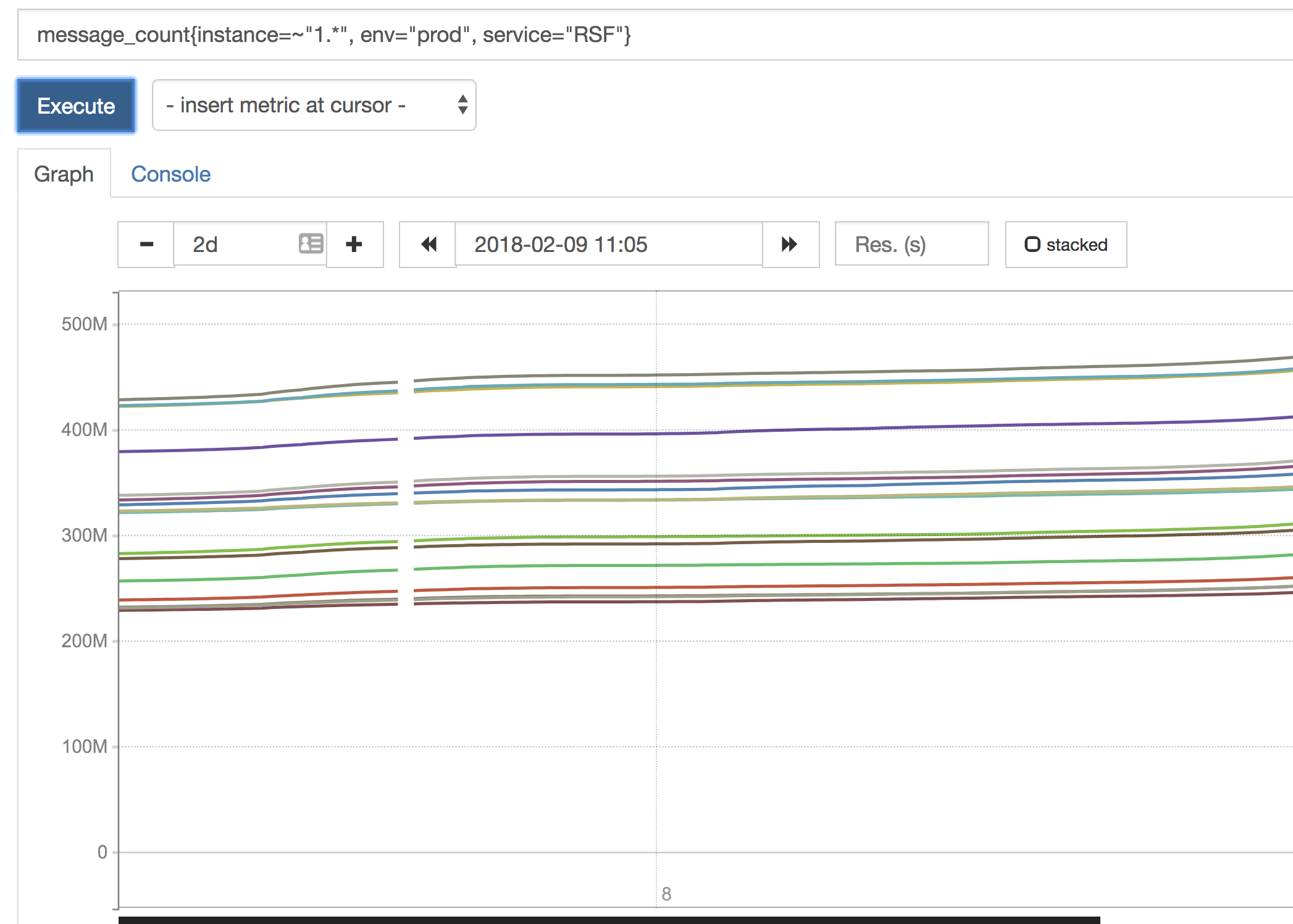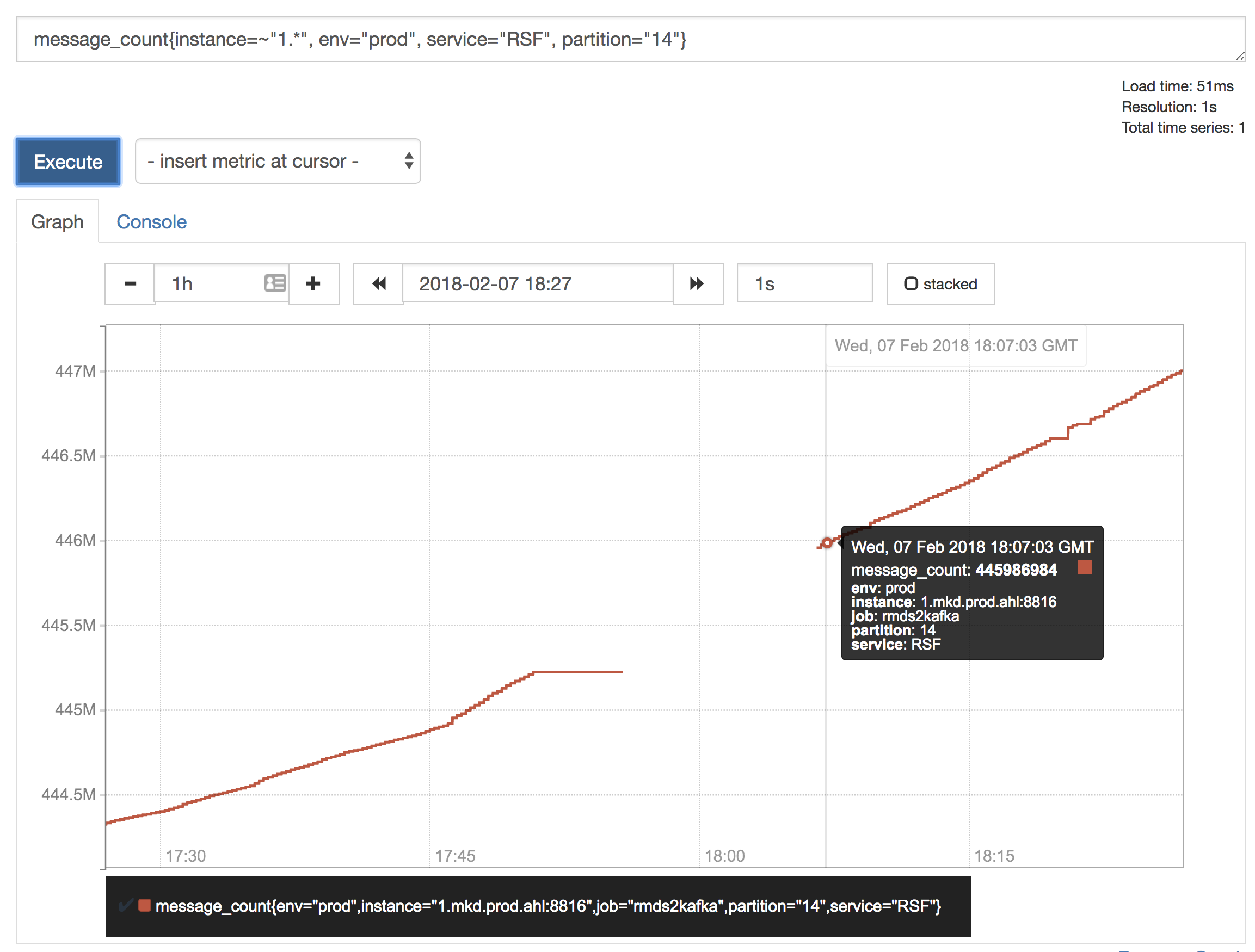 http://prometheus.dev.ahl:9090/api/v1/query_range?query=message_count%7Binstance%3D~%221.*%22%2C%20env%3D%22prod%22%2C%20service%3D%22RSF%22%2C%20partition%3D%2214%22%7D&start=1518020340&end=1518034740&step=57&_=1518780931424 Increase