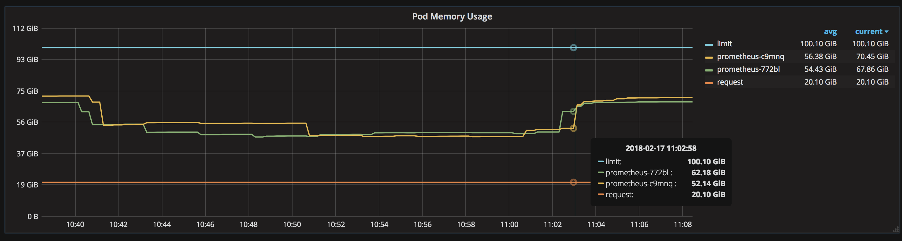 @brian-brazil the reason I removed that graph is I've since run it a couple more times and don't see a correlation between memory chunks increasing and the memory increase during a reload. |