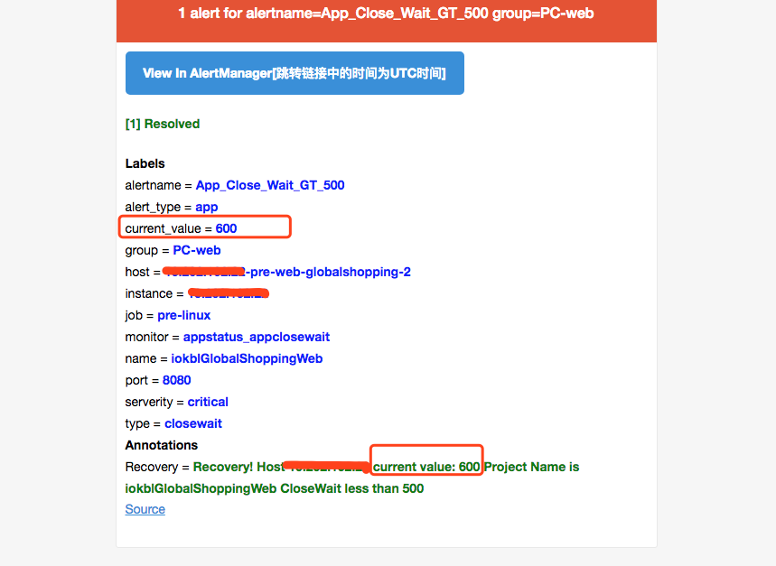 Resolved alerts don't have a value, because that doesn't make sense. It makes more sense to ask questions like this on the prometheus-users mailing list rather than in a GitHub issue. On the mailing list, more people are available to potentially respond to your question, and the whole community can benefit from the answers provided. |