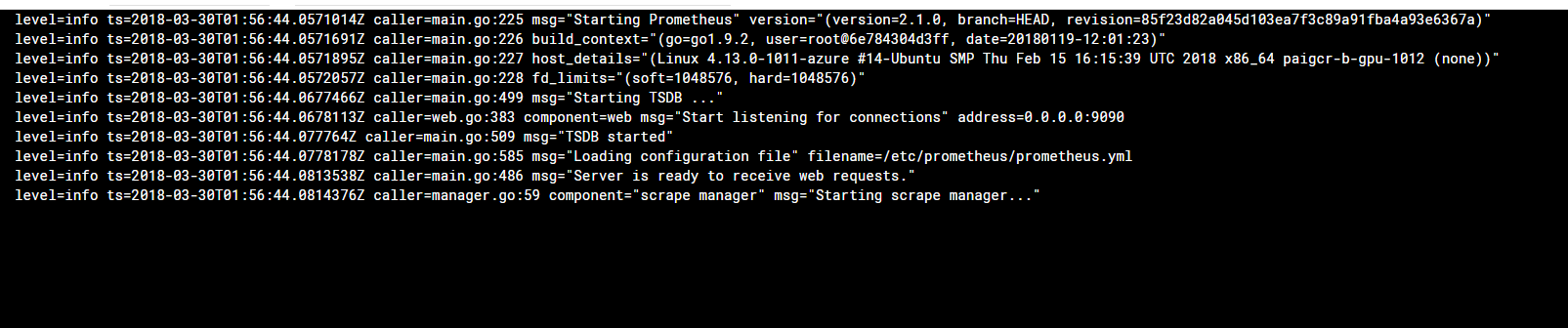 sudo docker run -d -m 3g -p 9090:9090 -v /home/core/yanjie/config:/etc/prometheus prom/prometheus:v2.1.0 --config.file=/etc/prometheus/prometheus.yml --log.level=error
