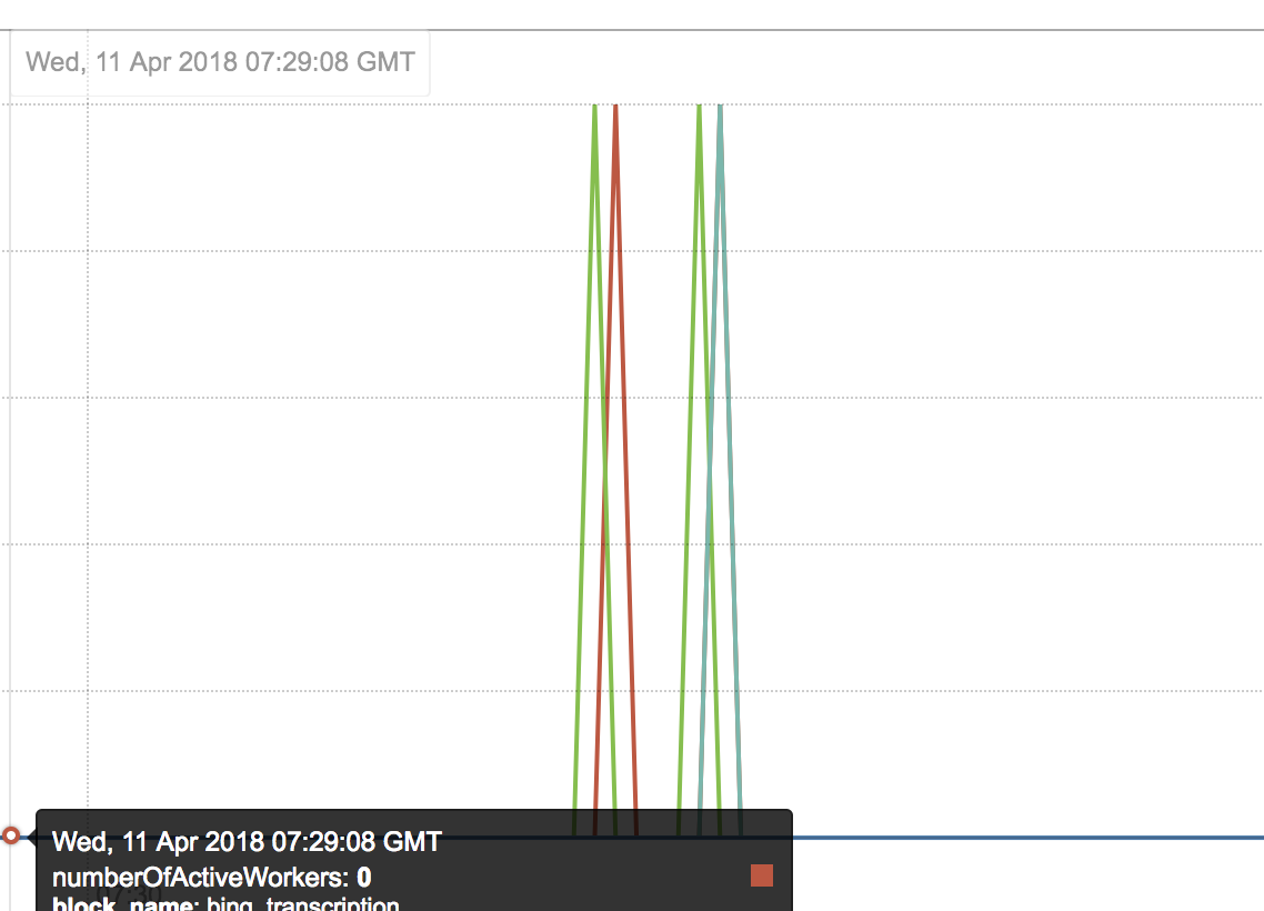 This is a very simple graph, showing four lines of integer number (one line per service) and, every time there is an update in the graph, those values keep rounding -1 down.