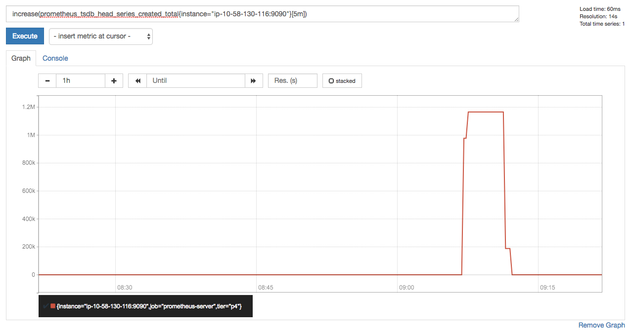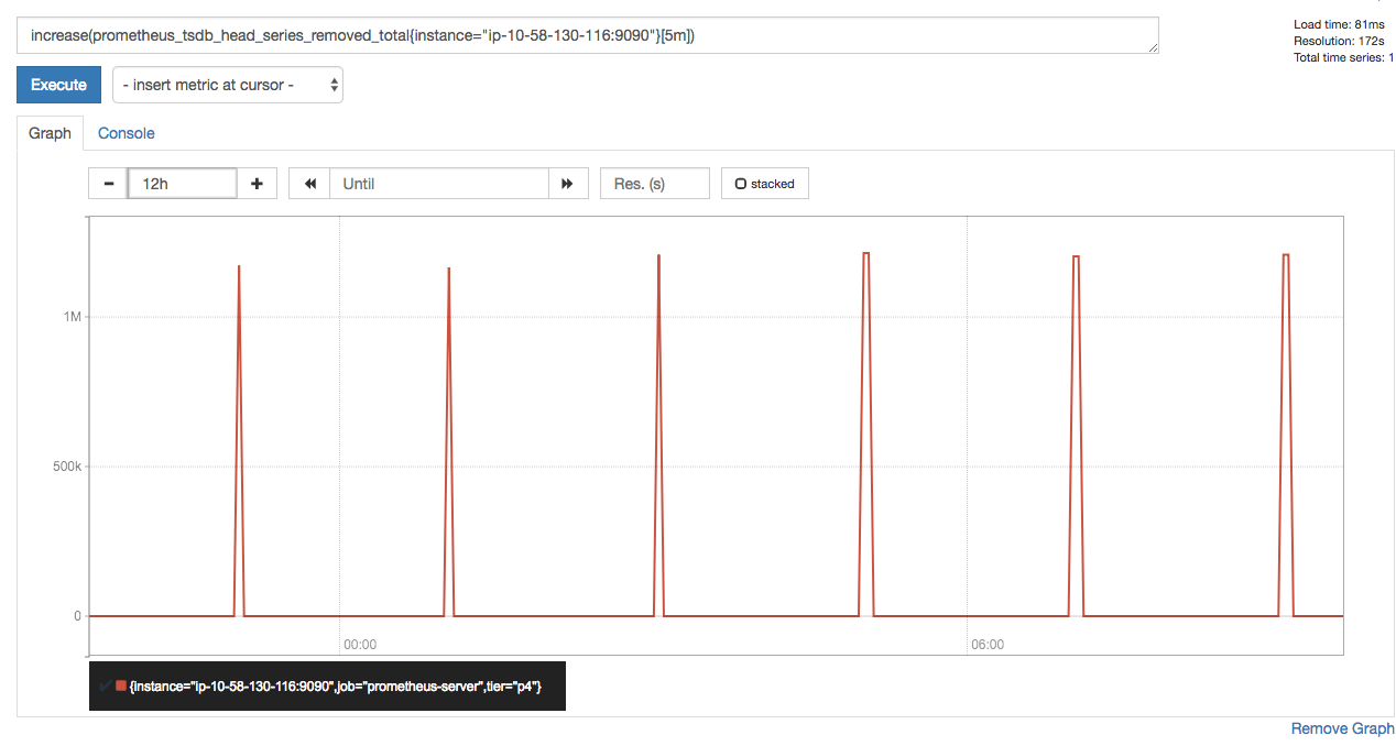 I would imagine that it's an issue for the first configuration with per-1h scrape. However, it still happens for per-30s scrapes. Moreover, in this case, it doesn't happen randomly, it happens at the same time as GC comes. |
