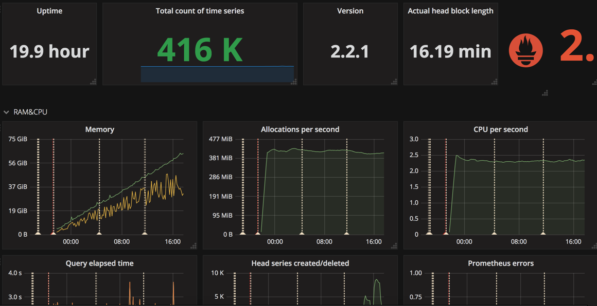 Sign upPrometheus Release 2.2.0 Memory Leak ? #4164