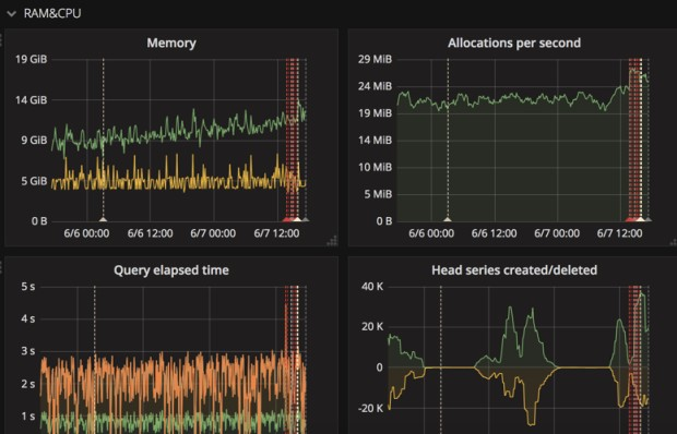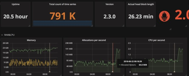 My prometheus was sucking up a ton of memory and disk. More than I expected. I had storage.tsdb.retention set to 10 days, and gave the prometheus docker 50G disk and 4G of memory. It wasn't happy. I tried upgrading to 2.3.0 and I think that made things even worse.