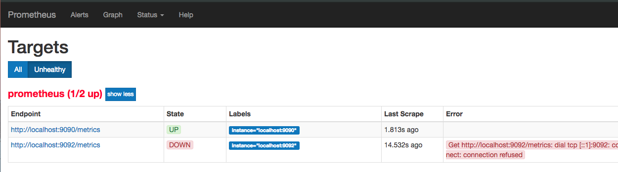 when I select unhealthy filter in page http://localhost:9090/targets, it doesn't hide the healthy targets.