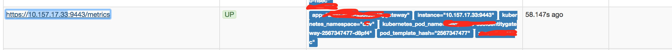 You probably have a mismatch between your kubernetes annotations and the relabeling configuration. Can you share the Targets page? It looks as if this is actually a question about usage and not development. For the future, I suggest that you use our user mailing list, which you can also search. If you prefer more interactive help, join or our IRC channel, #prometheus on irc.freenode.net. Please be aware that our IRC channel has no logs, is not searchable, and that people might not answer quickly if they are busy or asleep. If in doubt, you should choose the mailing list. |