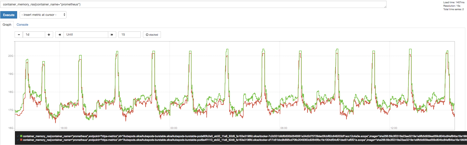 We identified some sort of memory leakage for a populated cluster, in steady state (same scale for continues hours operation) using prometheus 2.3.2.