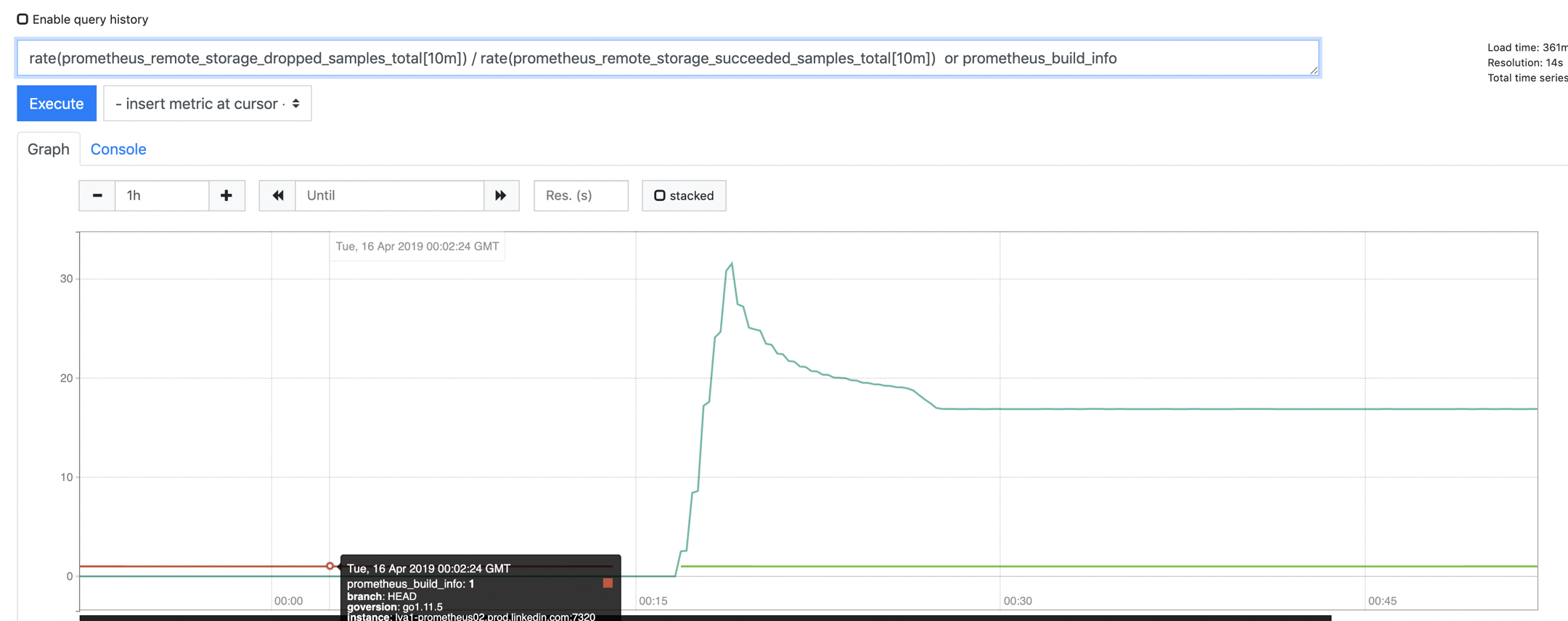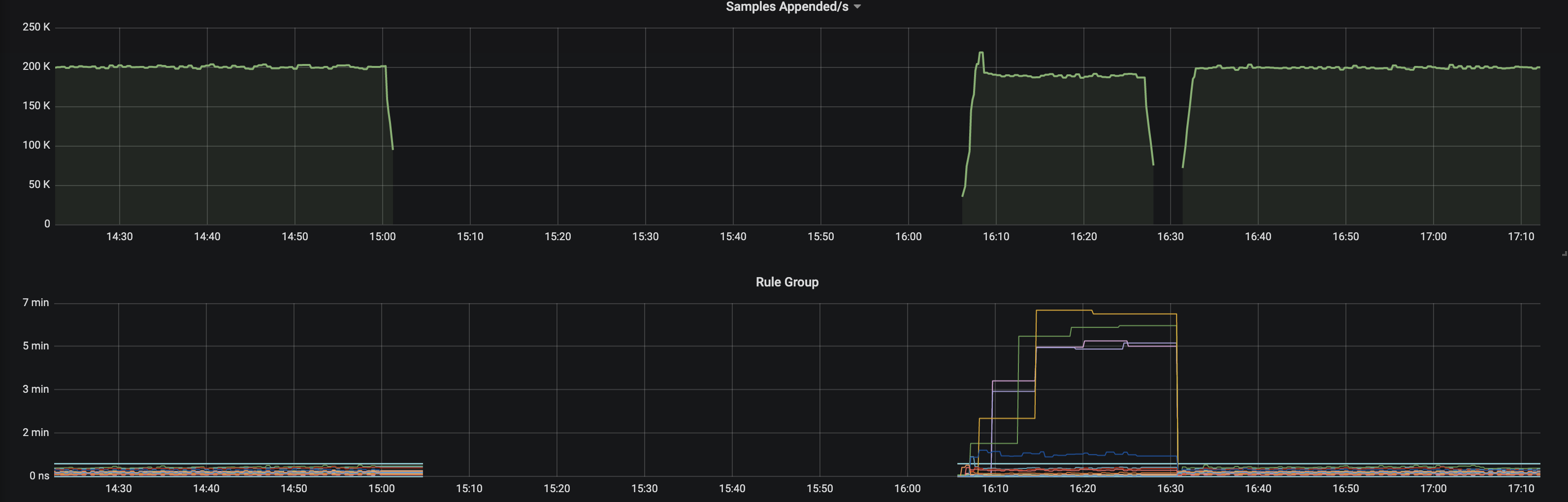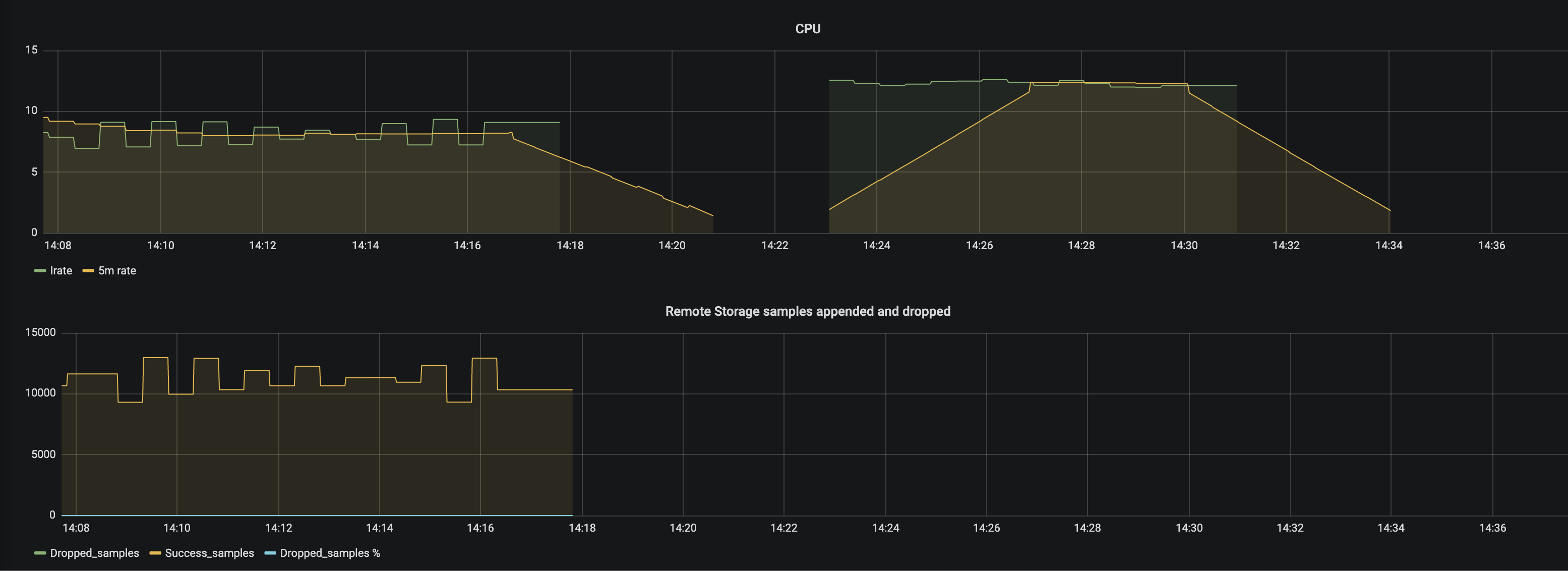 Hi @aned, sorry you're having issues with this. Can you post the logs from the startup of your Prometheus please? Also, can you post us screen shots of the following queries?