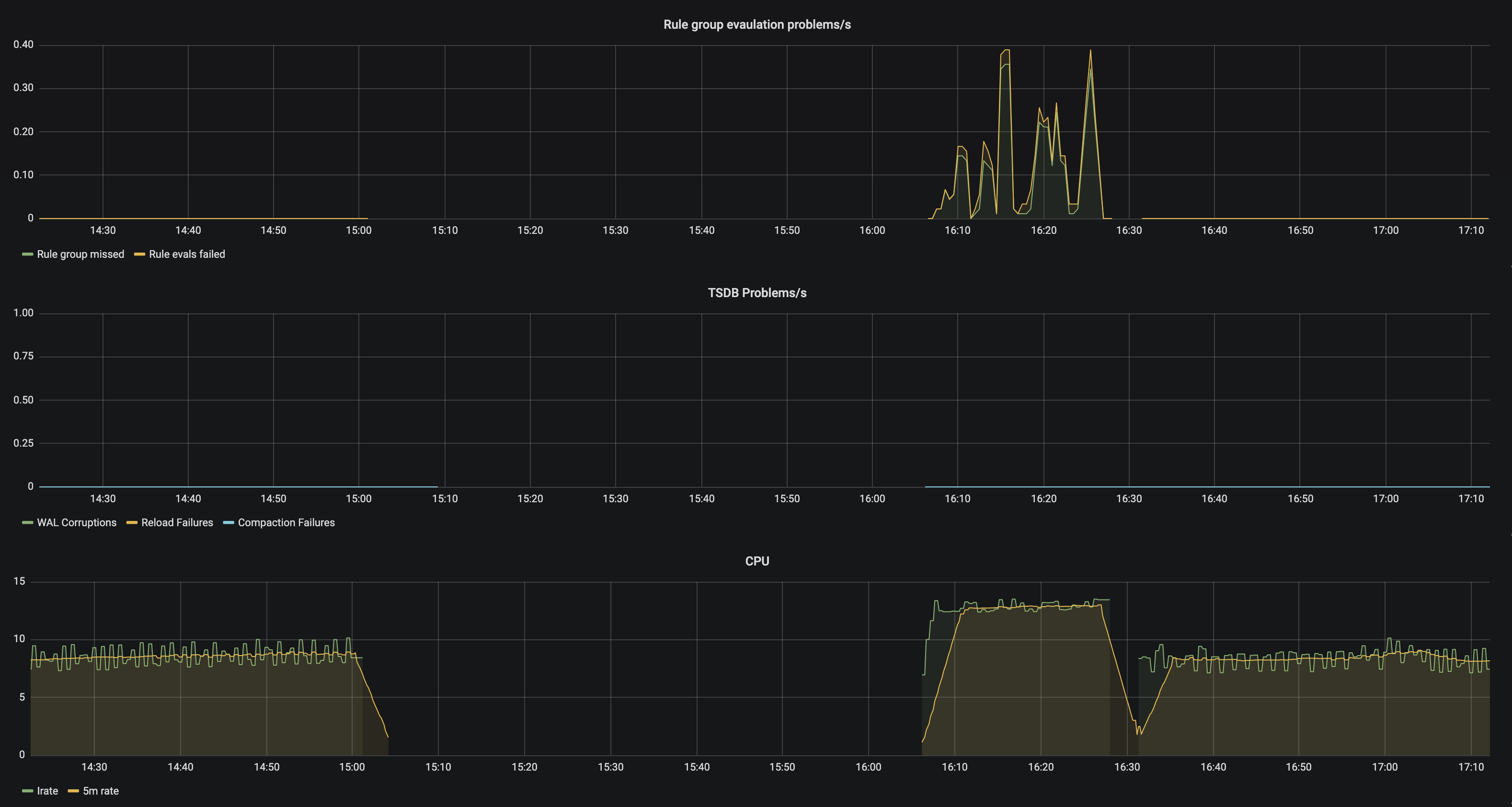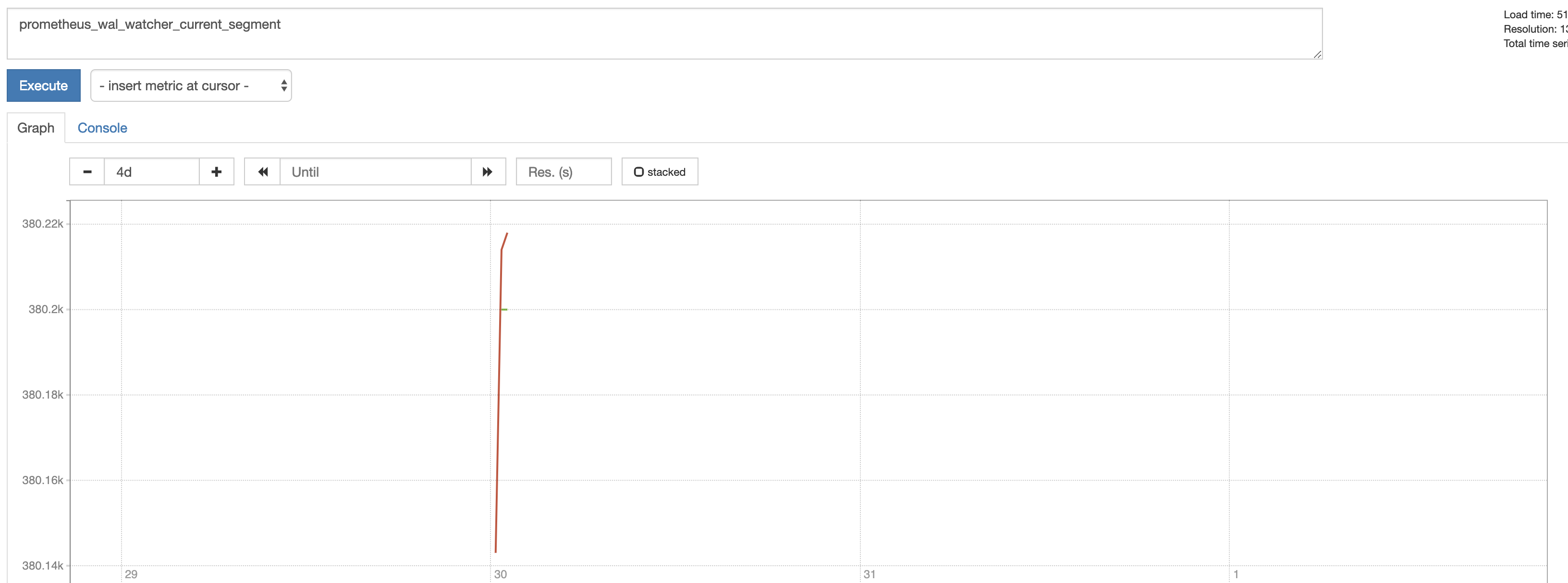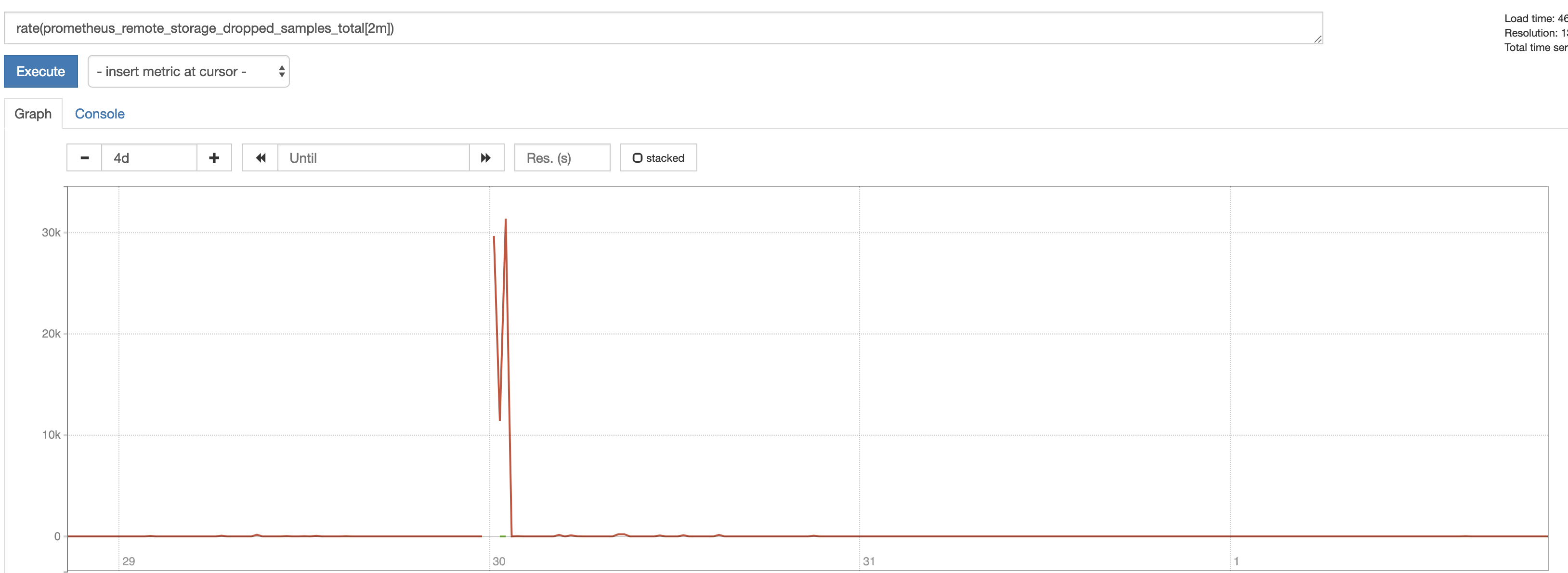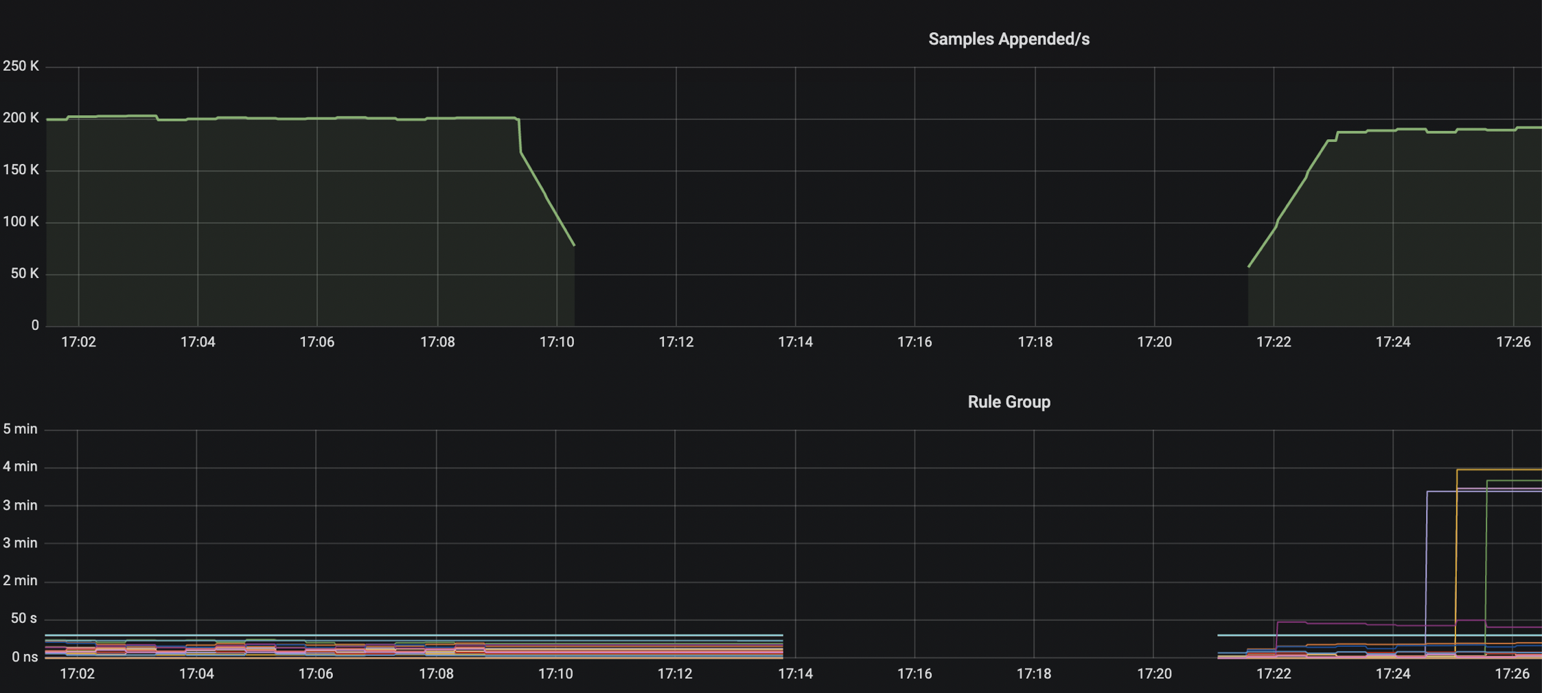 Hi @aned, sorry you're having issues with this. Can you post the logs from the startup of your Prometheus please? Also, can you post us screen shots of the following queries?