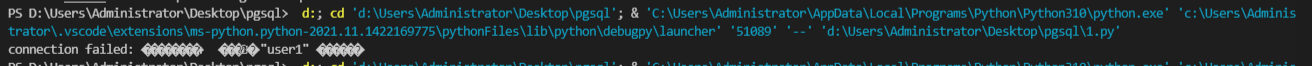 conn = psycopg.connect("user=user1 password='123456' host='127.0.0.1' port='5432' client_encoding='GBK'")