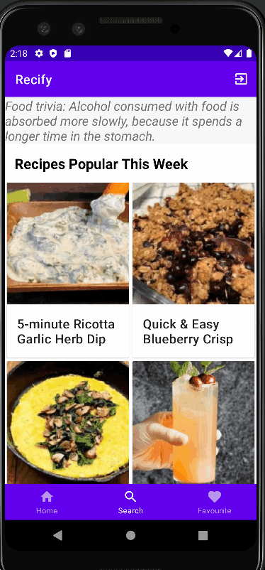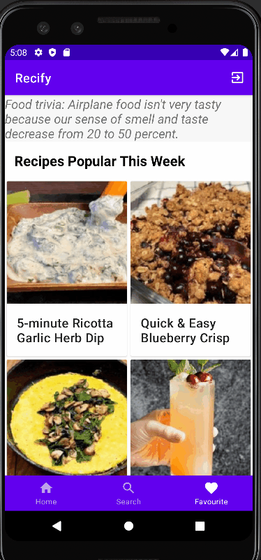 In this project I have used the Spoonacular API and Room, a database object mapping library. This app includes basic functionality like login and register with the access of searching the recipes,adding the favourite recipes to users favourite list.The app also provides the functionality to have step by step instruction to cook the recipe which user likes.