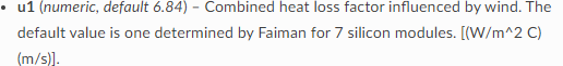 determined by Faiman for 7 silicon modules. [(W/m^2 C)(m/s)].
