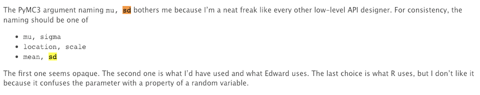 ...This was also rightfully criticized by @bob-carpenter in his blog post https://andrewgelman.com/2017/05/31/compare-stan-pymc3-edward-hello-world/