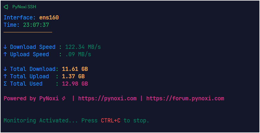 to stop monitoring. - Script automatically detects the active network interface If none found, it shows a friendly error message with a link to PyNoxi Forum