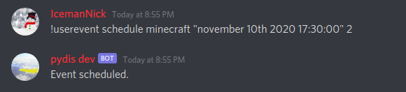 Also, another message is sent in the #user-event-announcement channel, like the one below: