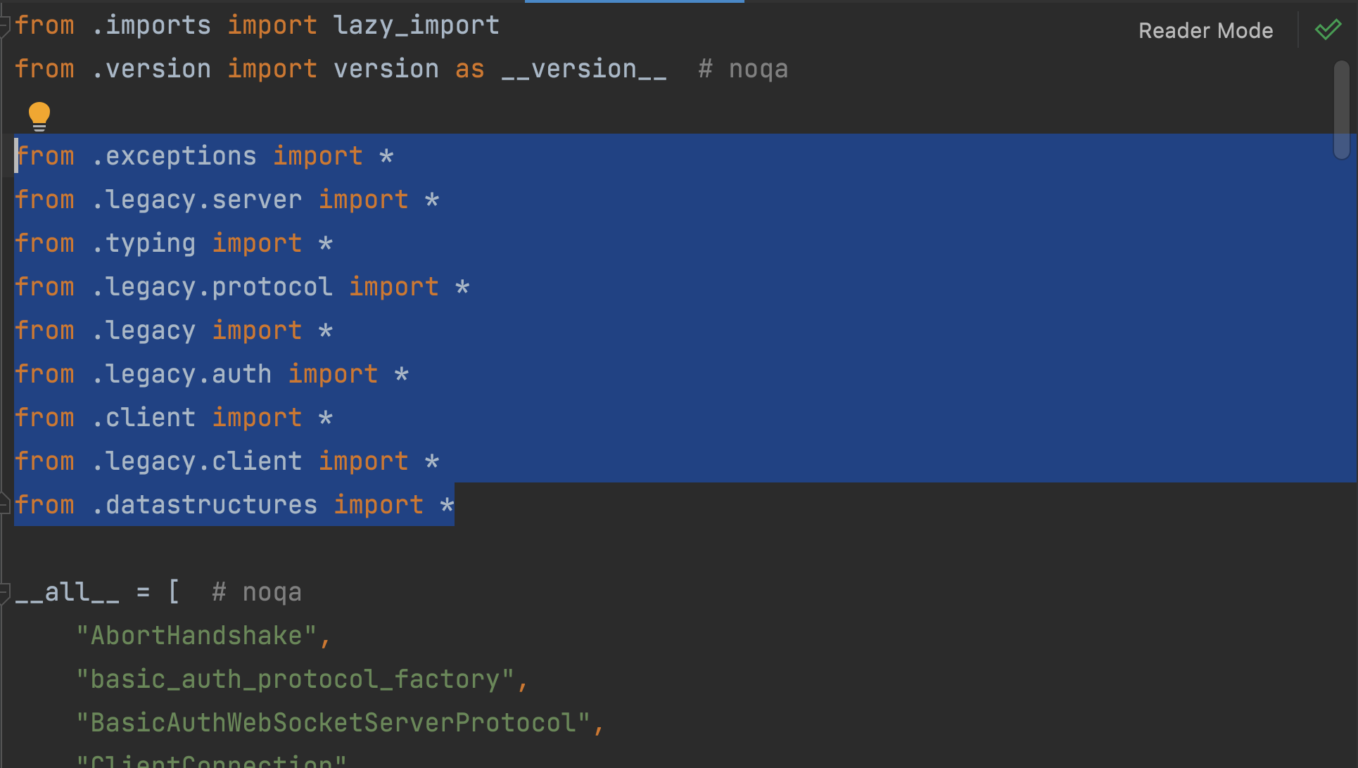 This is what the IDE "experience" was like after modifying the __init__.py file