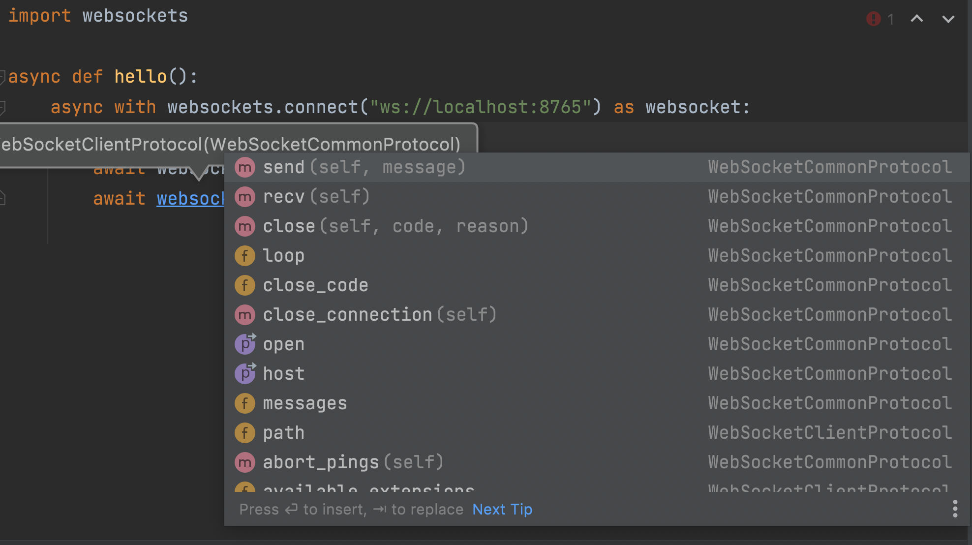 Below is an example of the code using the lazy_import, which is exactly how a developer would experience the library after pip installing it in PyCharm