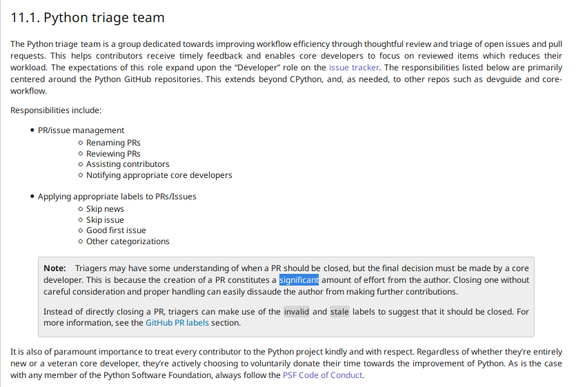 Thanks @aeros167. I reworded the triager/core dev responsibilities to be more positive.