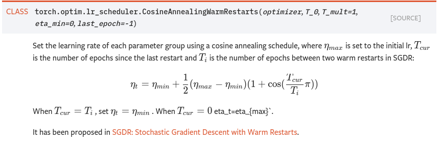 ## 📚 Documentation <!-- A clear and concise description of what content in https://pytorch.org/docs is an issue. If this has to do with the general https://pytorch.org website, please file an issue at https://github.com/pytorch/pytorch.github.io/issues/new/choose instead. If this has to do with https://pytorch.org/tutorials, please file an issue at https://github.com/pytorch/tutorials/issues/new --> https://pytorch.org/docs/master/optim.html#torch.optim.lr_scheduler.CosineAnnealingWarmRestarts   cc @vincentqb