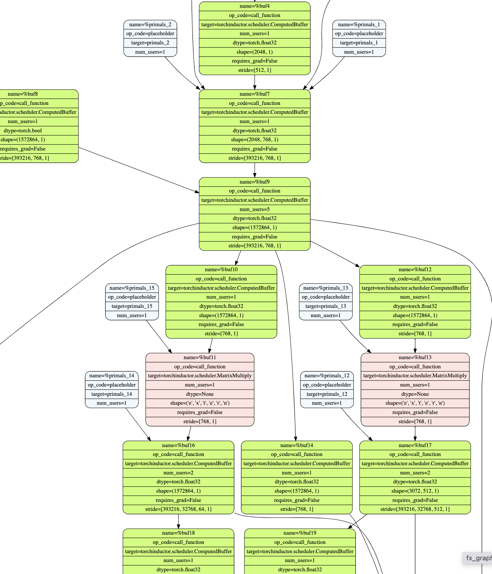 INDUCTOR_SCHEDULER_GRAPH=1 python benchmarks/torchbench.py --training --devices=cuda --inductor --skip-accuracy-check -n 1 --isolate -k hf_Bertto dump the forward and backward graphs of compute-buffers of hf_Bert. The resulting svg file will be in torchbenchmark/.