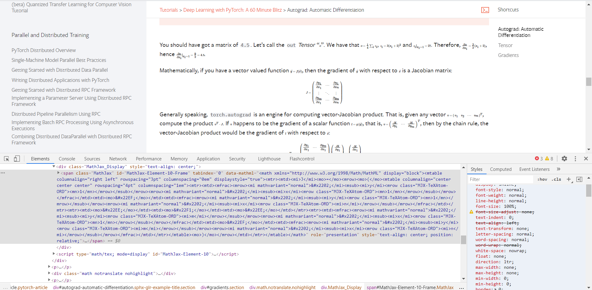Font scale does not match the preview shown on this commit, pytorch/pytorch_sphinx_theme#35 and the given preview link, https://5c1420f1f7907c558e51f188--shiftlab-pytorch-tutorials.netlify.app/beginner/blitz/autograd_tutorial.html#gradients.