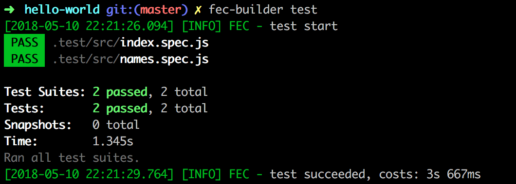 支持运行单元测试(使用 webpack 先将测试文件作为 entry 进行转换,然后将转换结果作为测试用例执行,从而避免重复配置 jest 等测试工具),使用示例