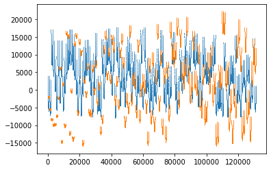 Now the quadratic error (the little parabolas), the LUT data quantization error (the scatter) and the phase quantization error (not visible here) all three are of similar magnitude. The max and rms quadrature errors are now 1e-5 and 6e-8 relative to full scale over all possible 20 bit values.