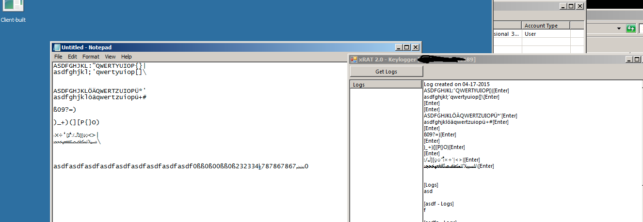 Added simple hook-less keylogger, simple form, and command handling to fetch logs/display logs. If this is of interest the things left to do would possibly be: -Encryption/decryption of logs -Improve UI for form/functionality -Settings for customization of key logger such as to enable/disable, intervals, active/offline, hard coded path/config settings path -Fixes, code cleanup, etc