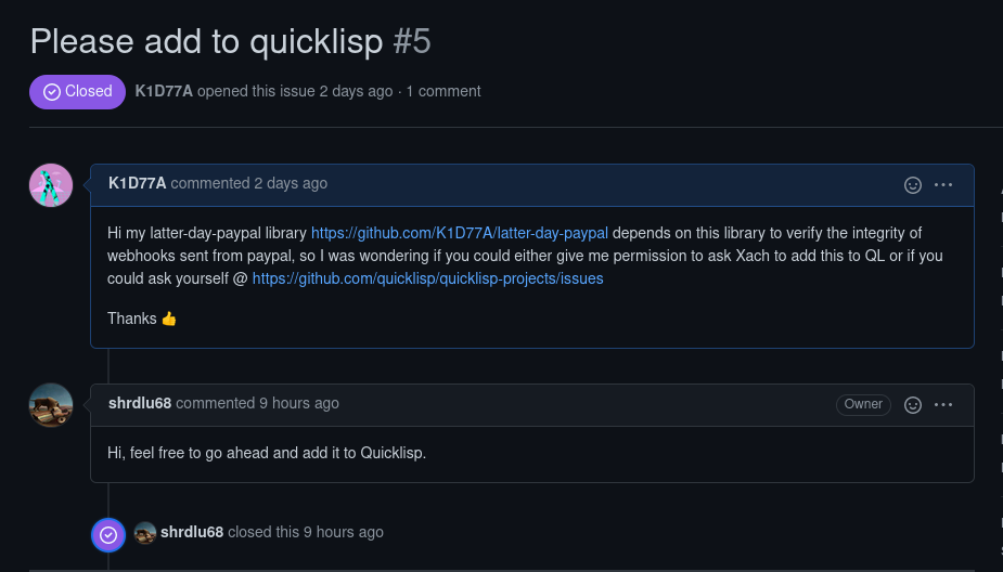 Can you please add cl-tls license: BSD-3 Link: https://github.com/shrdlu68/cl-tls Proof I have permission to ask:  Thanks!
