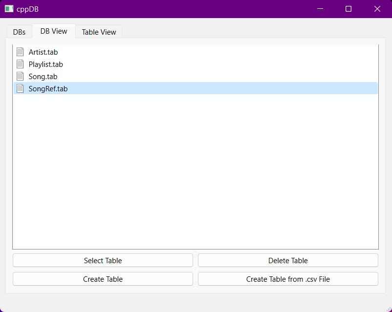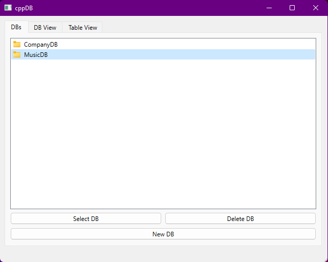To open a database to view its contents and alter it, simply click on its name from the list and press the Select DB button.