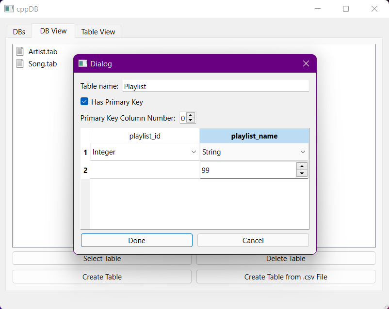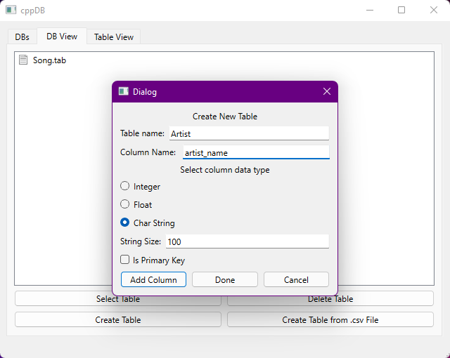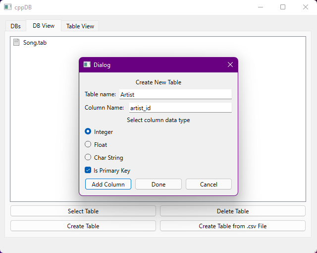 Selecting a table works just like selecting a database. Click on its name and press the Select Table button.