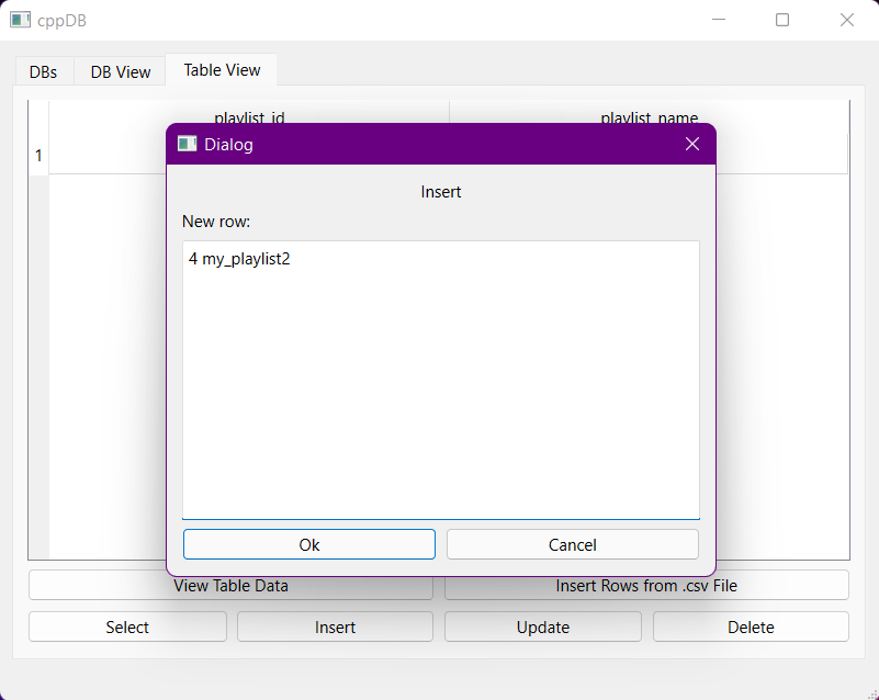 Select a file and press Open. The program will automatically insert all valid rows from the file.