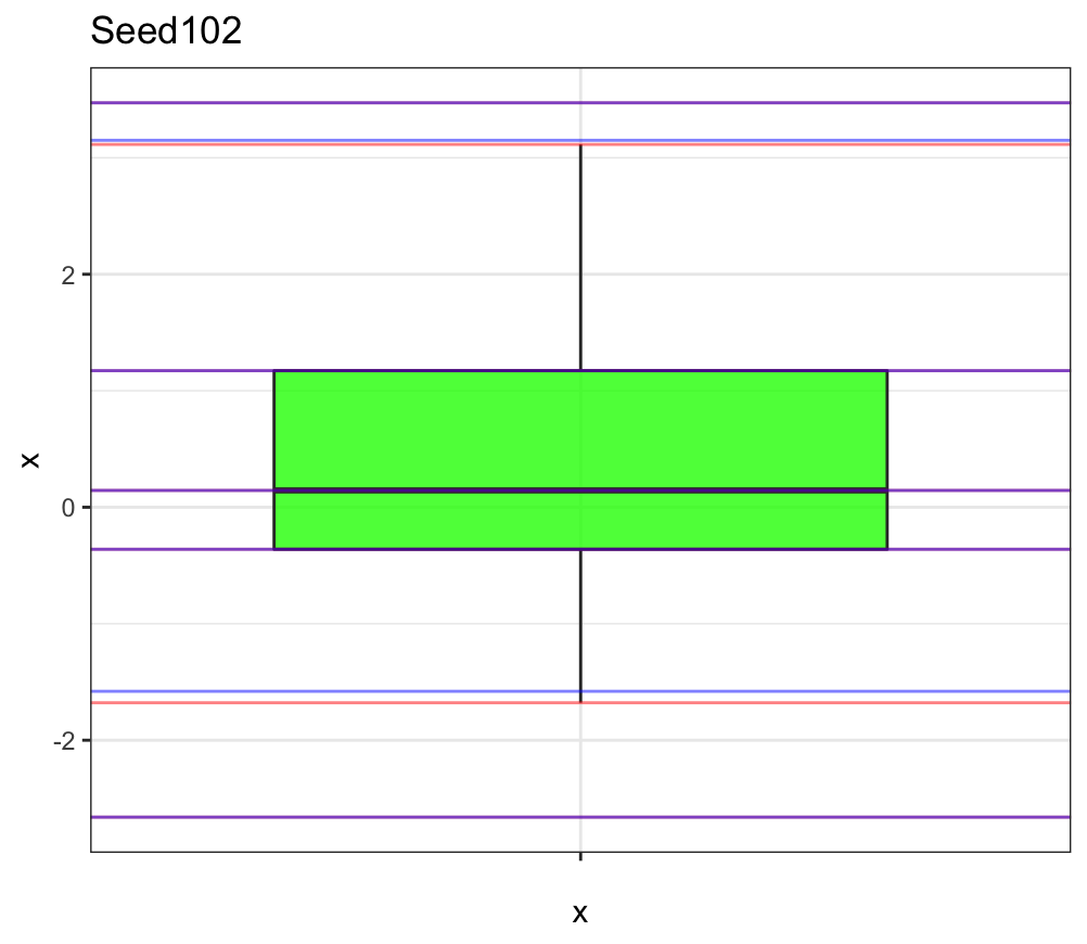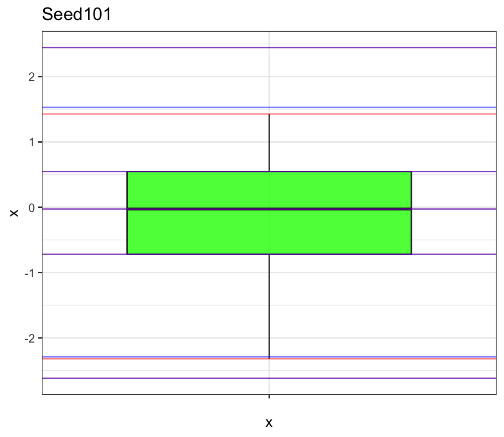 I most probably miss the wider picture, but not sure why floor(qv[1]) rather than qv[1] (and similarly ceiling) are needed at all in: logic for lower and upper fencesif (lofence < qv[1]) { # no lower outliers } else { In the case of seed (101), if the floor is removed, i.e;: then we would get