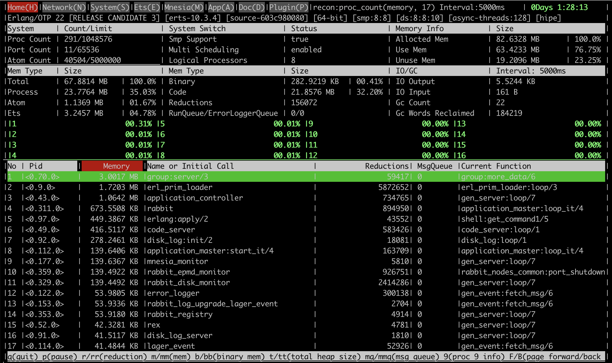 The viewport looks wrong when running scripts/rabbitmq-diagnostic observer