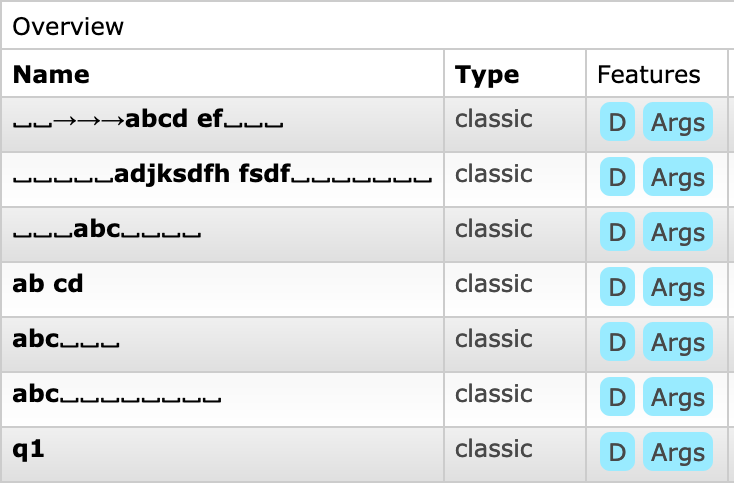 are highlighted, each with a highlighting character. Tabs are highlighted everywhere in the name,including in the middle. This assumes that tabs are only used in names by mistake (unlike spaces).