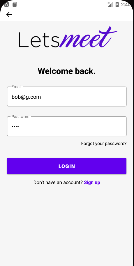 Let's Meet An app for meeting new people How to use? Download or clone this repo. Install dependencies. npm install // or yarn install Run project on iOS / Android / Expo. yarn ios // yarn android // yarn start // or npm run ios // npm run android // npm start Screenshots