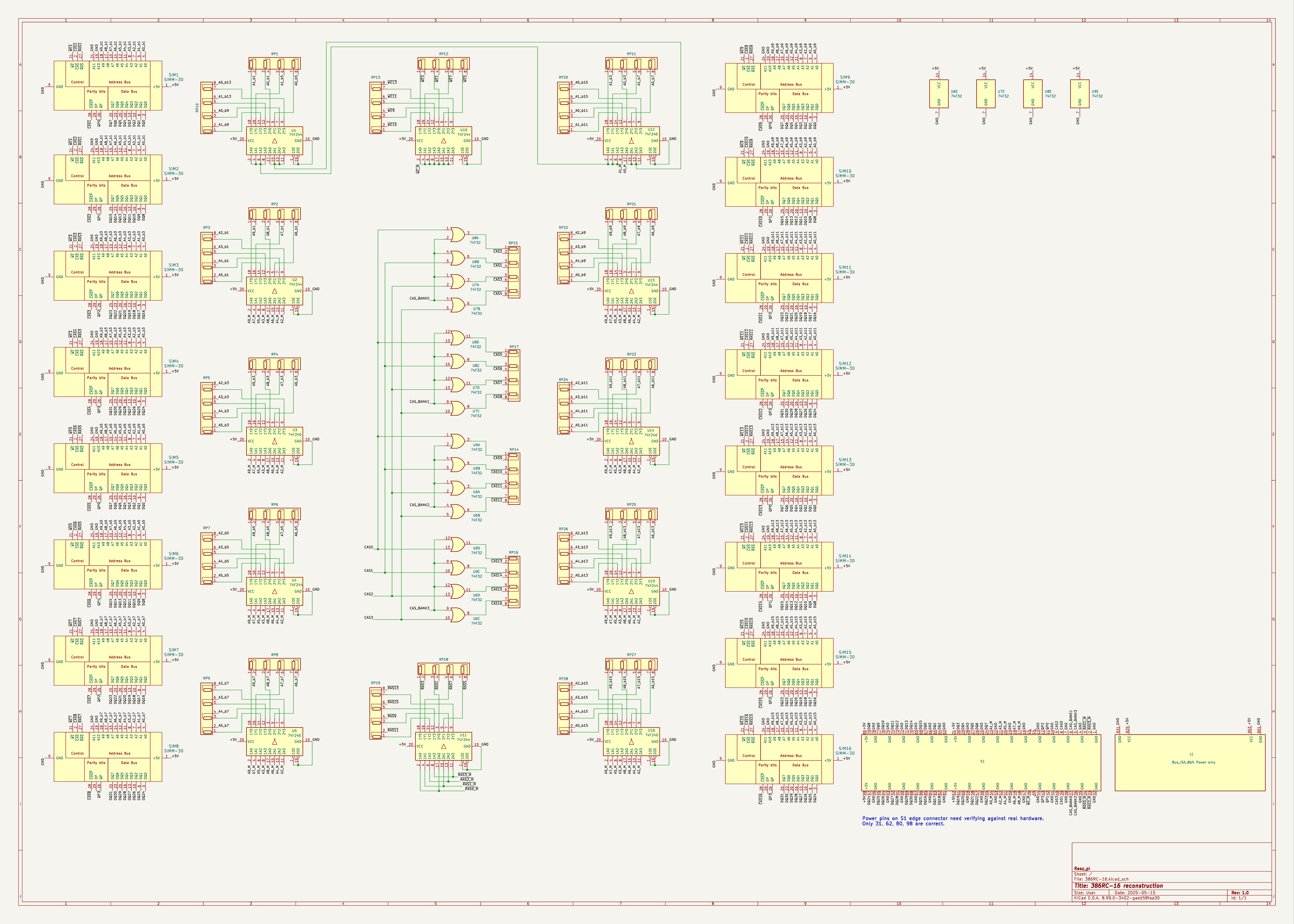 Diagram (png,pdf). Interesting detail about design - it exposes two ways of driving CAS (Column Address Strobe) signals. Designer made it flexible enough to be able to work with different memory controllers/interleave configurations. One set of four CAS pins drives consecutive SIMM sockets in every Bank, the other 4 pin set drives whole banks per CAS line. Brilliant.