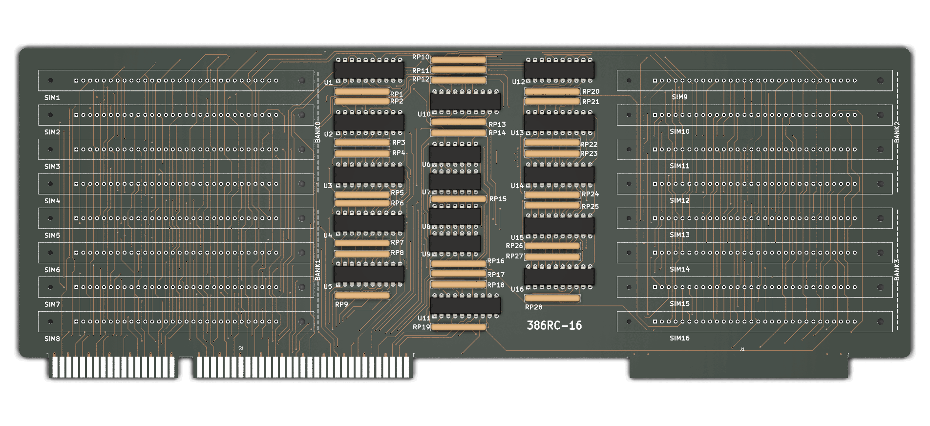 10/30/2024: Project start. Looking at pictures of 386RC-16 uploaded by McBierle on vogons forum and assesing feasibility. Rougly placing components more or less by eye and tracing few lines. 1% there