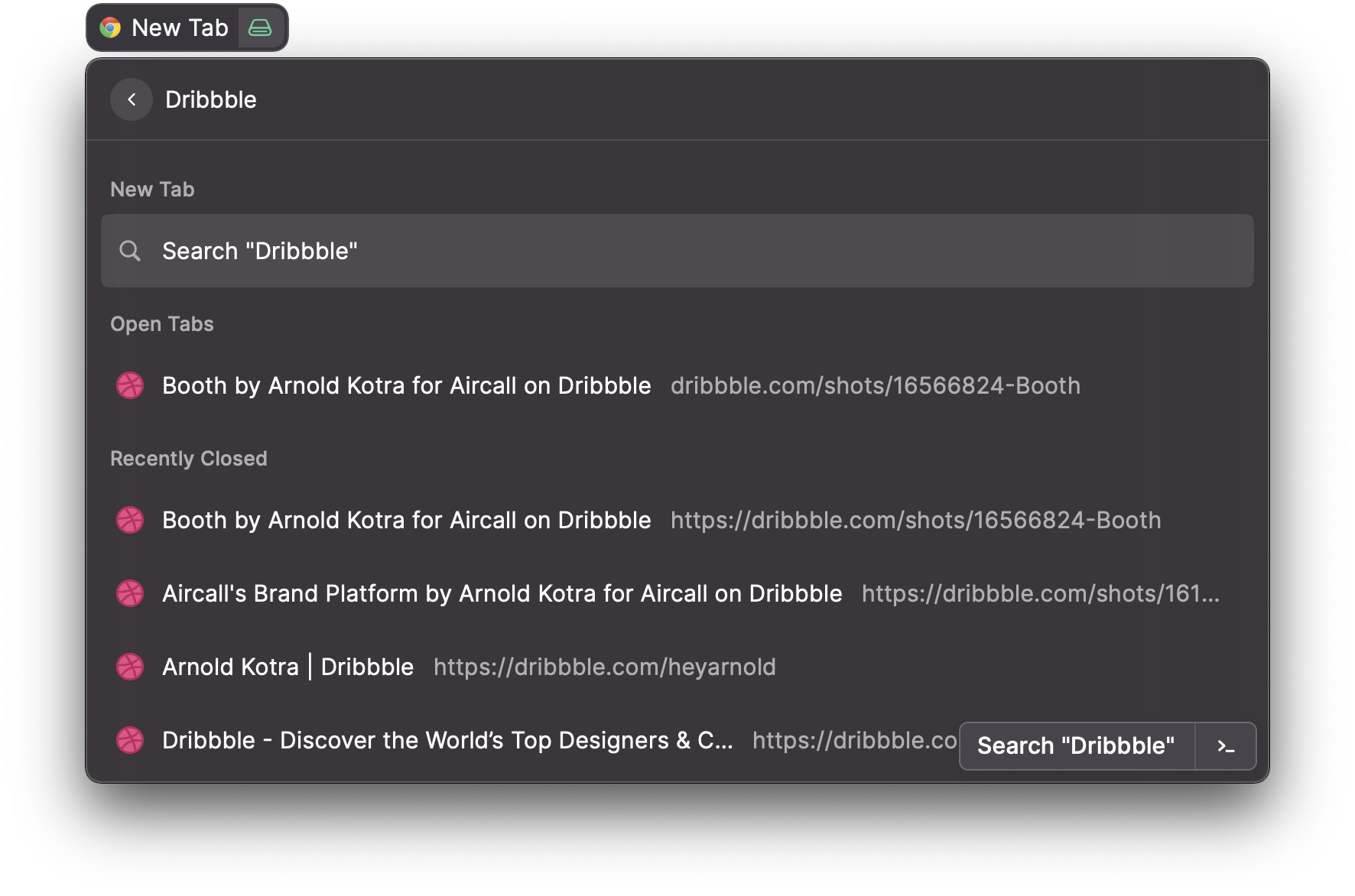Currently opened or recently closed tabs matching the query will be suggested to avoid opening an existing tab.
