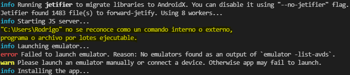 npx react-native run-android, I got this problem:It's because my Windows name profile is "Rodrigo Maafs" (with a space)