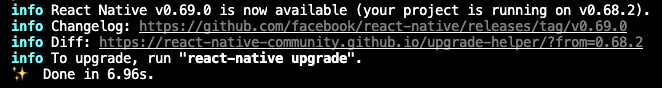 Being with react-native in an earlier version 0.69.0 the cli will display information that there is a new version. We will be able to click on the link to view the Changelog, without breaking! o/