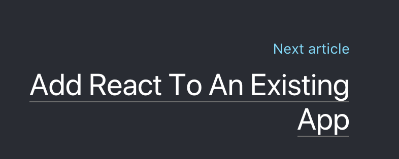 | - **[Add React to a New App](/docs/add-react-to-a-new-app.html)** Create a new app with a starter kit like [Create React App].(http://github.com/facebookincubator/create-react-app) | ||