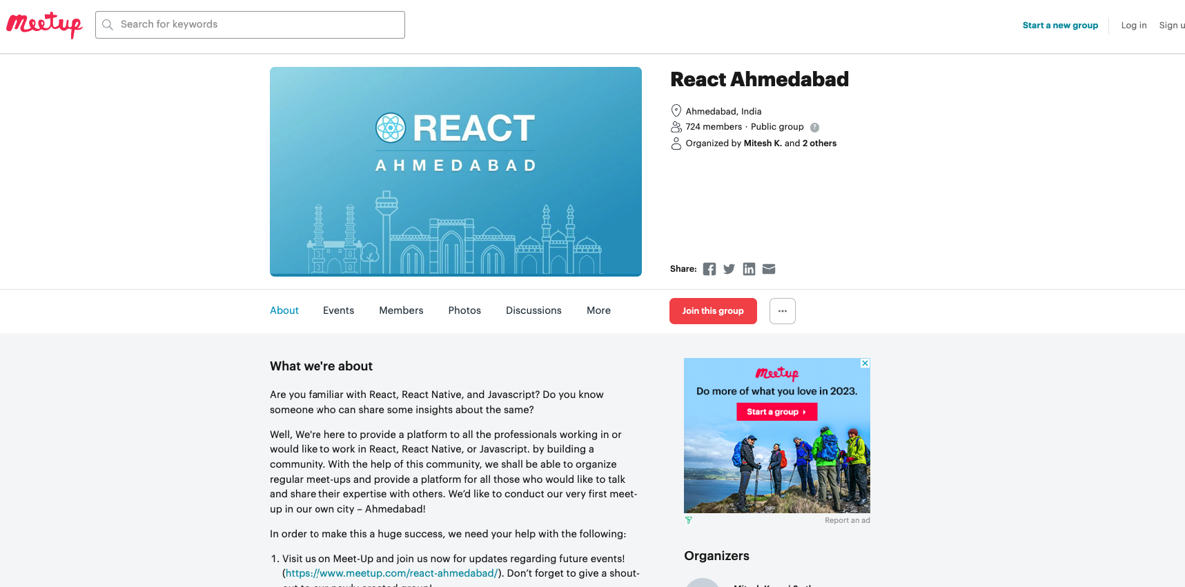 react-ahmedabadmeetup link in the community.https://www.meetup.com/react-ahmedabad/
