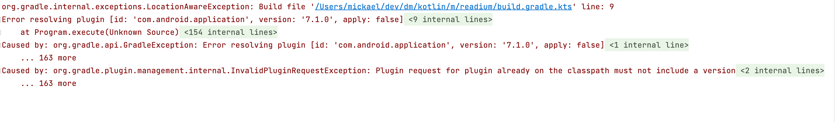 While integrating the latest Kotlin toolkit using the Gradle Kotlin DSL as a Git submodule, I faced this error: