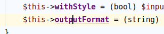 Code can work https://3v4l.org/GL6II, but sometimes not https://3v4l.org/eTrhZ  ↓ ```diff +/** + * @var string + */ +private $outputFormat; ```