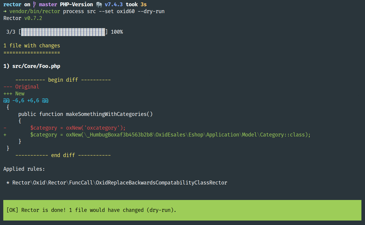 $ vendor/bin/rector process src --set oxid60 --dry-run